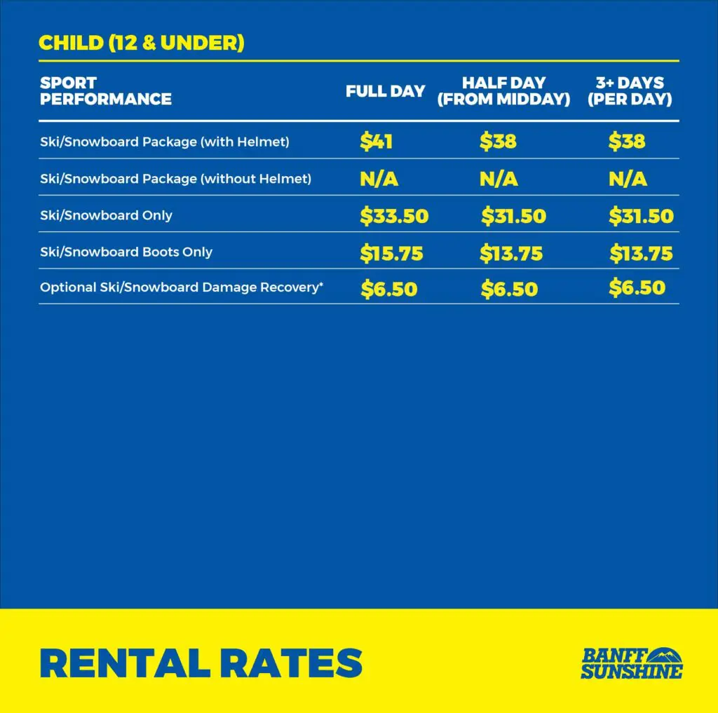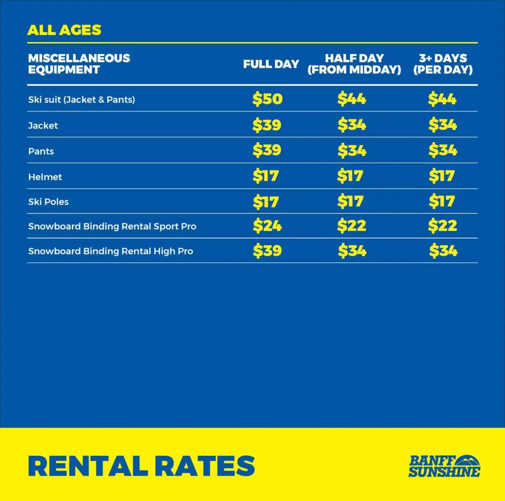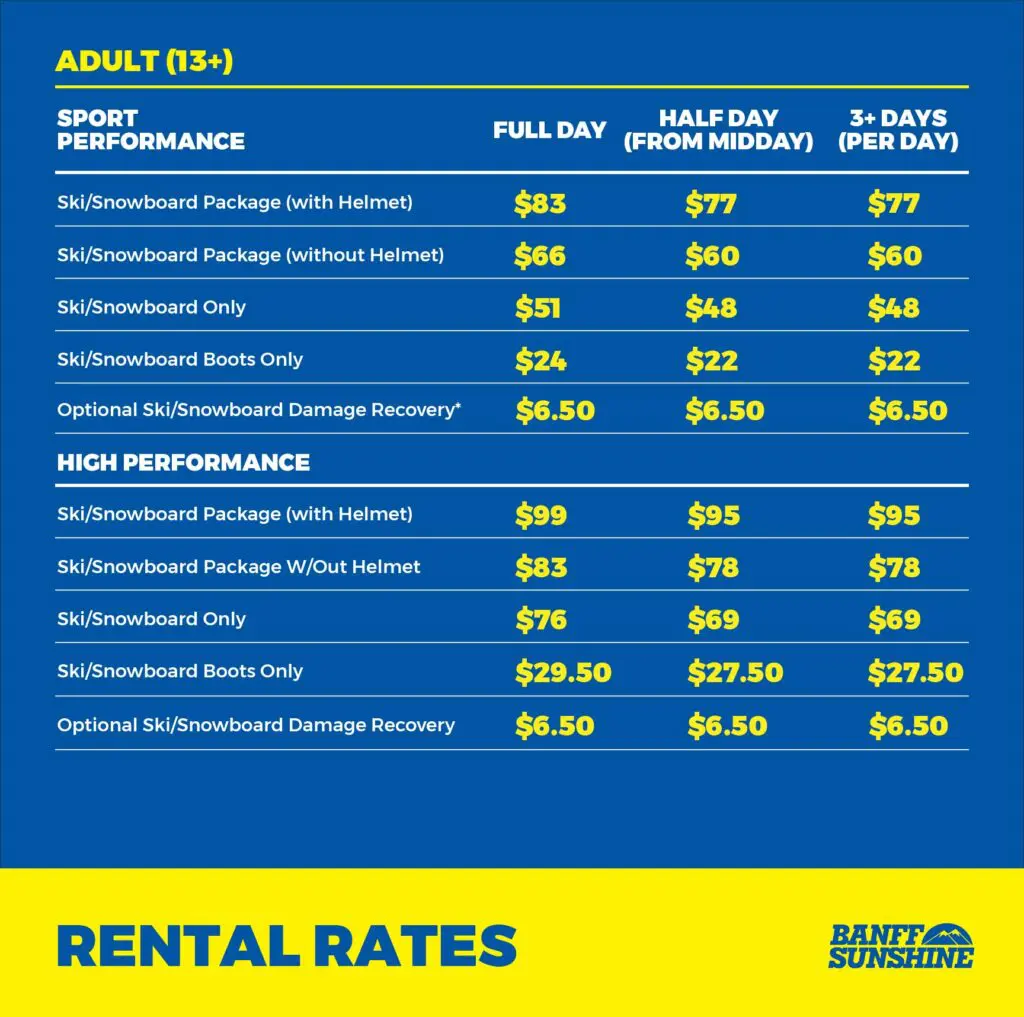 Prices do not include GST and are subject to change without notice. A credit card is required to rent equipment.